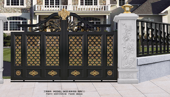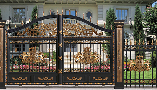 別墅庭院大門材質(zhì)選用高端硬鋁合金型材,以及整體實(shí)心鑄鋁花件,純手工拼接制作而成。